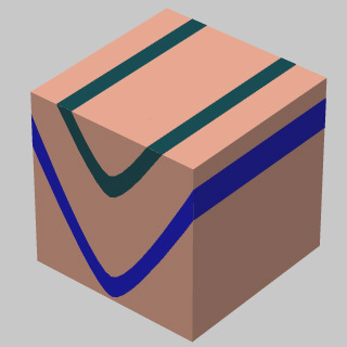Below on the left is an image of a block with a fold in it. Identify the type of fold in this block. Then use clues from the visible faces of the block to determine which two faces of the block the image on the right could be. |