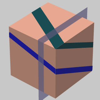One of the four images on the right shows a straight-on view of the block from the right after it was cut and the right portion of the block removed. Which of the four choices shows the correct view of the cut face? Click on your answer choice.